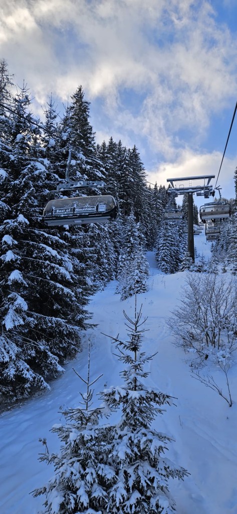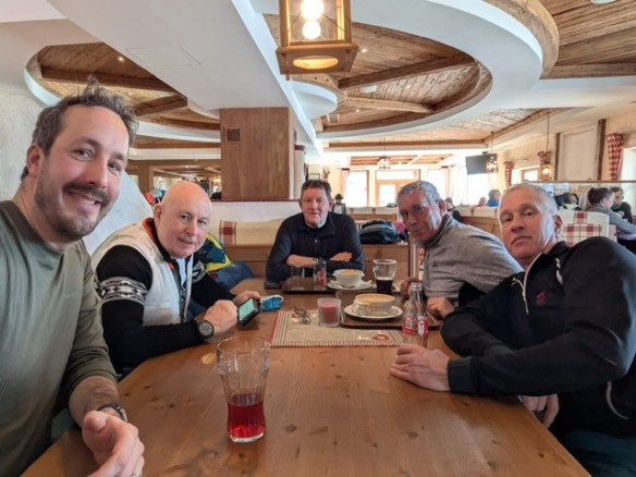 De calculatie was gebaseerd op een dubbeldekker busreis + halfpension. Doordat het aantal aanmeldingen tegen de zeventig deelnemers was en er dus een flink duurdere dubbeldekker bus nodig was, bleek de gecalculeerde prijs toch voor de deelnemers lager uit te vallen. Dus dat was weer een lekkere meevaller. De skipas voor deze periode bedroeg €388,–