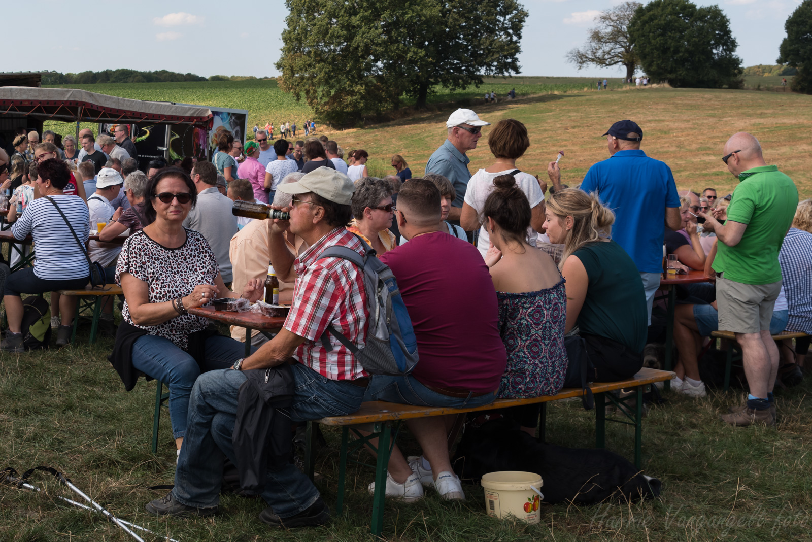 Voor de openingswandeling op zondag 2 september 2018 hadden zich 32 deelnemers aangemeld. Een stijging van het deelnemersaantal van bijna 30% t.o.v. 2017. Helaas kampten enkele personen met wat lichamelijke problemen en hadden keurig afgezegd. Om 11.45 uur werd vanaf de parkeerplaats in het weiland in Stokhem met de gehele groep gestart. Het weer zat ook vandaag ontzettend mee zoals de laatste paar maanden. Het hapje en vooral het drankje is dan ook met veel liefde verorberd.