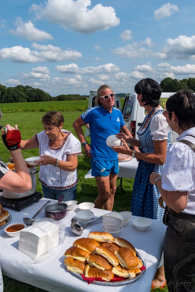 Op de pauzeplek kon in ieder geval met een beker tomatensoep en een broodje, verzorgd door Oostenrijks geklede dames, weer een beetje op adem worden gekomen voor de 2e helft. Rond 15.00 uur was iedereen weer op de startplaats aangekomen en kon genoten worden van een glaasje prosecco, aangeboden door het bestuur van Ski Limburg.