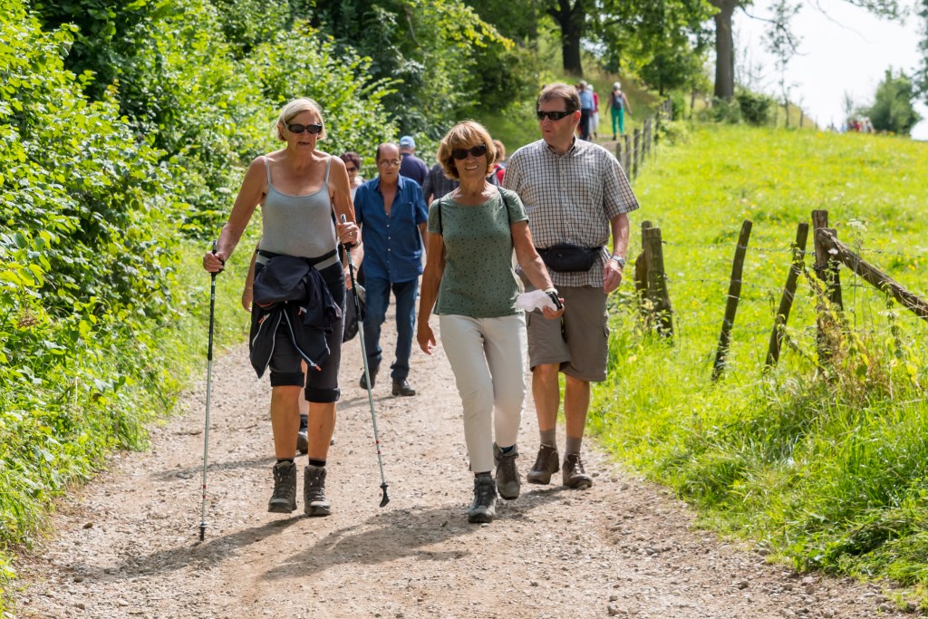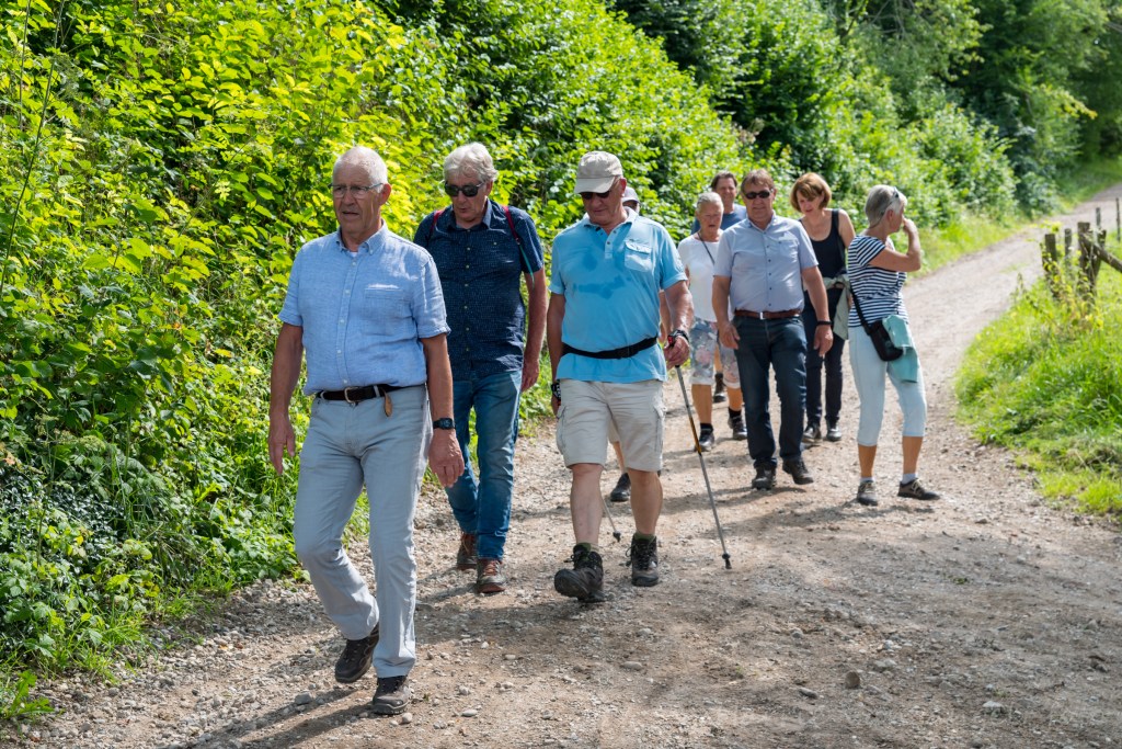 De openingswandeling voor het seizoen 2021-2022 was verplaatst naar de JUBILEUMWANDELING, door de jubileum commissie voorbereid, en aansluitend gehouden na de Algemene Leden Vergadering op 21 augustus 2021 in Schin op Geul en er werd zelfs iets vroeger gestart dan 12.30 uur. De wandeling was zo uitgezet dat er voor de fanatieke wandelaar circa 2,5 uur en 9,6 km gewandeld kon worden en voor de minder fanatieke wandelaar een kortere route van circa 5 km in 1,5 uur gelopen kon worden. Op de ‘pauzeplek’, op ongeveer de helft van beide routes, werd voor eenieder een broodje en kop soep geserveerd. Gezien de fantastische weersomstandigheden, welke de jubileumcommissie had ‘geregeld’, is deze wandeling eenieder in de smaak gevallen. Mogelijk voor de echte ouderen misschien net weer iets te zwaar, mede door het warme weer.