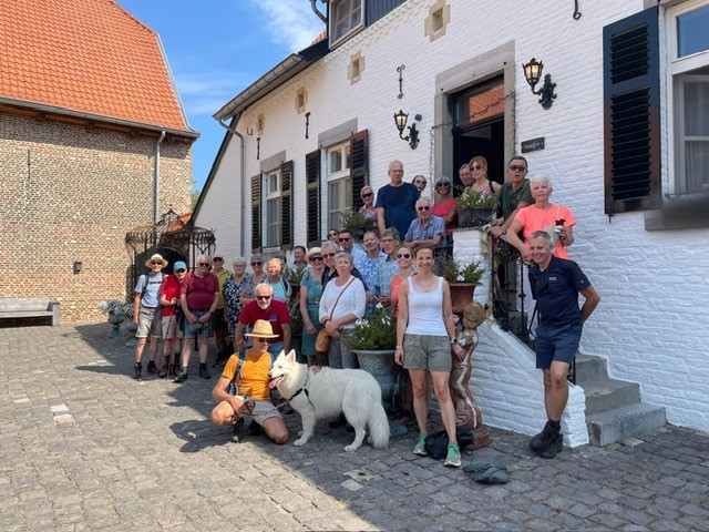 De OPENINGSWANDELING voor het seizoen 2023-2024 was op 27 augustus 2023 in Vlodrop. We waren klokslag om 10.30 uur gestart bij de Gitstappermolen waar voldoende parkeergelegenheid was. Een kleine uitleg van Paula dat we in 2 groepjes zouden lopen, 1 groepje die de lange tocht o.l.v. José en 1 groepje een kortere tocht o.l.v. Paula. Daarnaast hadden zich nog 2 leden met de fiets gevoegd die een eigen route hadden afgelegd en door een blessure niet mee konden wandelen. Halverwege was er een kleine pauze en konden de deelnemers even bijkomen. Na afloop van de tocht werd gezamelijk op kosten van de vereniging een kopje koffie/thee met een stukje vlaai, genuttigd. Een aantal deelnemers vonden het ook wel lekker om direct de lunch te nuttigen op eigen kosten na zo’n mooie wandeltocht. Om 14.15 uur barste het onweer los en kozen de deelnemers toch voor hun terugreis. Wederom een gezellige wandeling en leuke opening van het seizoen. Paula en José bedankt voor jullie begeleiding!