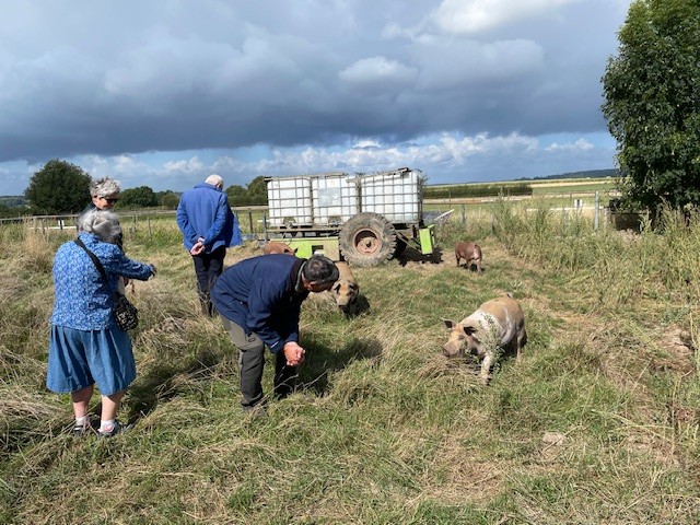 Op ZATERDAG 30 AUGUSTUS 2025 vond OPENINGSWANDELING van het seizoen 2025-2026 plaats. De voorzitter had dit jaar deze tocht uitgezet vanaf de Kuusj, Hilleshagerweg 47a, Hilleshagen – Mechelen. U kon kiezen uit de kortere vlakke wandeling of een iets langere en heuvelachtigere wandeling. Beide wandelingen startten om 10.00 uur en duurden circa één uur. Om 11.00 u kregen we van de jonge eigenaren van de Kuusj een rondleiding met uitleg hoe zij denken over het hoeden van een varkenboerderij. Een huifkar tochtje naar Mechelen naar hun slagerij waar alle vlees uit de regio, die een gelijkluidend idee hebben als zij, kon gekocht worden. Hierna werd geluncht met de lekkernijen van de Kuusj. Er kon gekozen worden uit 1.Limburgs zuurvlees 2.gehaktbal stroopsaus 3. broodje gehaktbal 4. broodje boerenkaas vega. Elke keus was een schot in de roos.