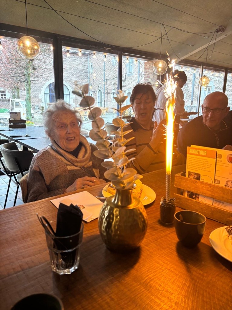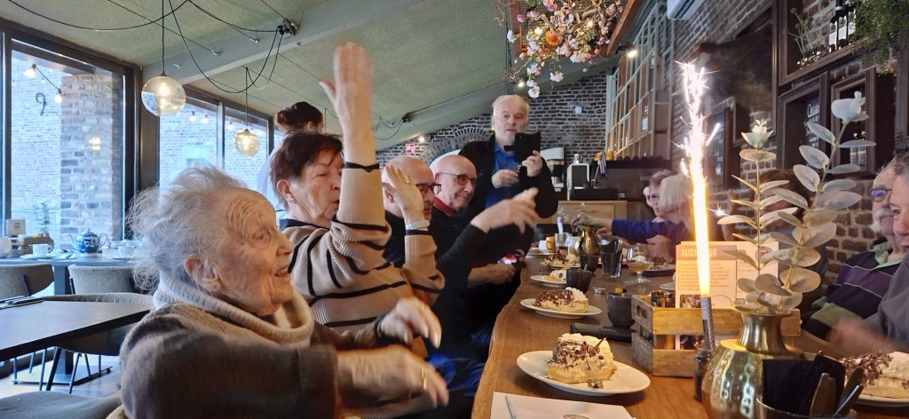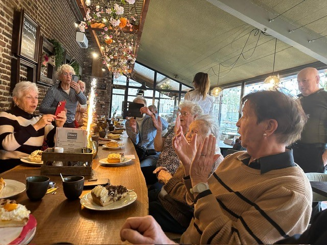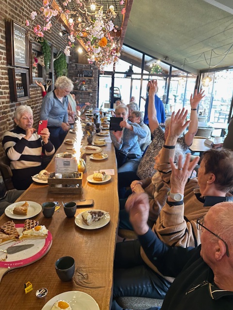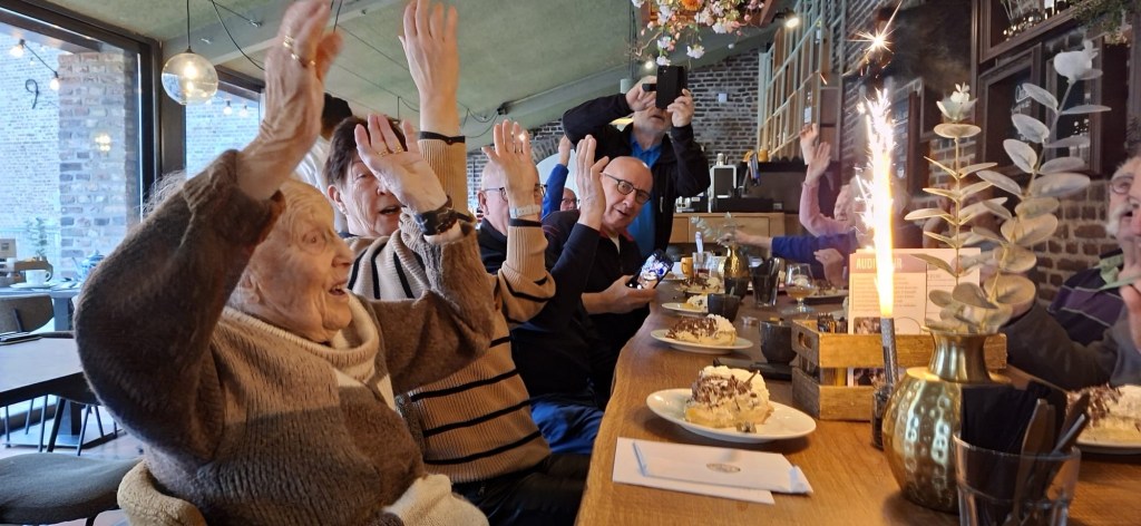 Op zondag 22 feb 2026 was er rond het kasteel Limbricht een NW wandeling uitgezet voor de 32 aangemelde NW-ers. Om 11.30 u werd Elly in het kasteel opgewacht en werd haar verjaardag alsnog in het bijzijn van haar NW en Ski Limburg vrienden, gevierd. Een heerlijk stuk limburgse vlaai met een consumptie werd door iedereen zeer goed ontvangen. Elly had op haar beurt nog een extra verrassing in de vorm van een chocolaatje. Hartstikke lief!